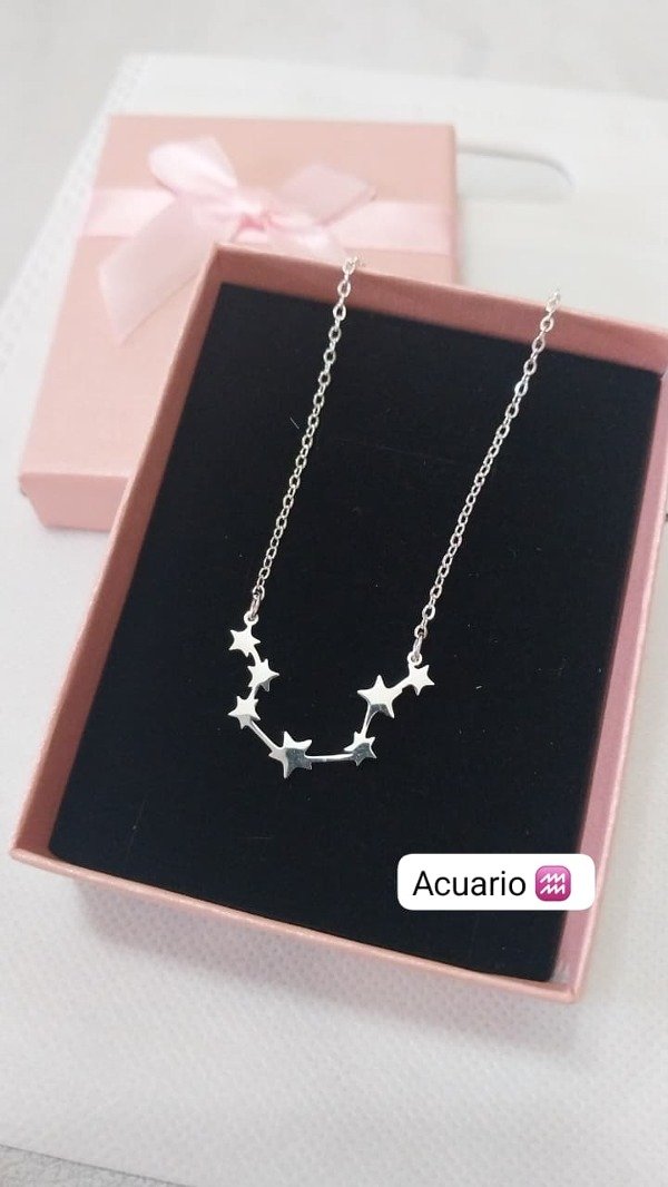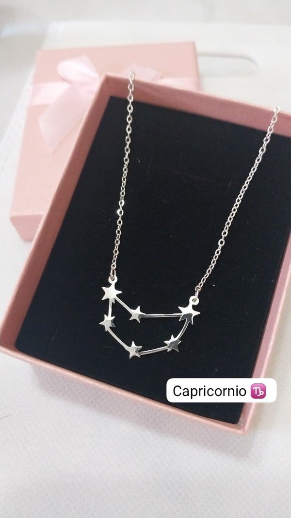 Llevá siempre con vos la magia de tu signo. Nuestros collares de acero blanco con baño de plata están diseñados con el dije de tu constelación zodiacal, combinando estilo y personalidad en un accesorio único.